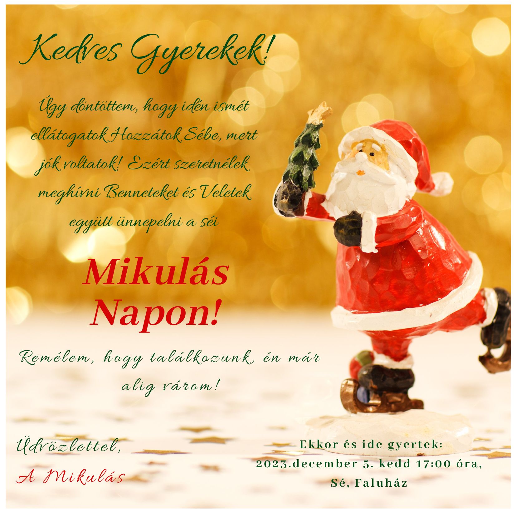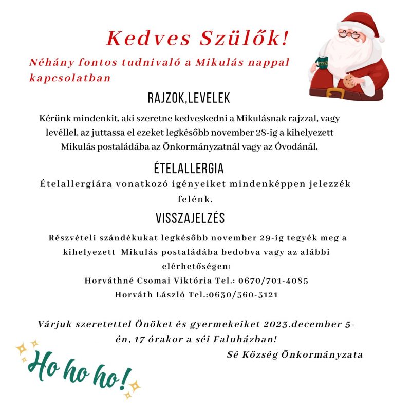 A MIKULÁS 2023.12.05-én látogat el Sébe!