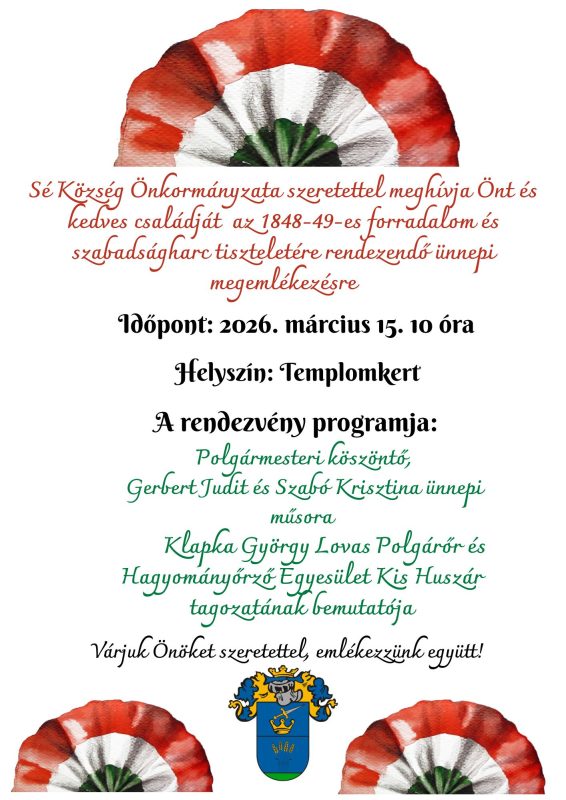 Időpont: 2026. március 15. (vasárnap) 10:00.