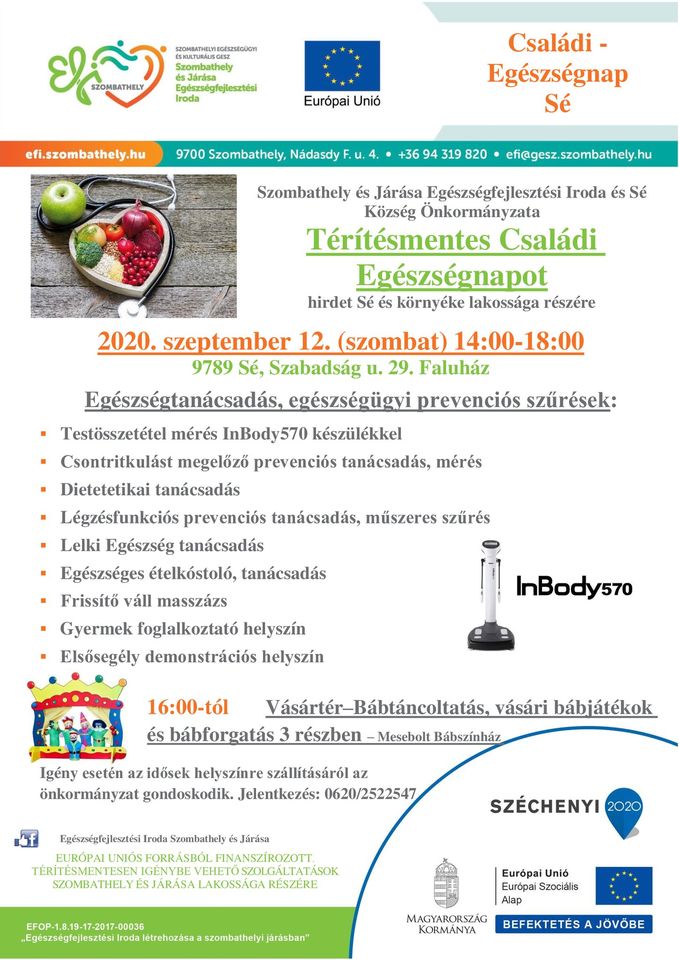 Családi Egészségnap Sében! Főoldal / Hírek / A héten 09.12-én szombaton 14 órától várunk mindenkit!! Gyerekeknek ugrálóvár, bábszínház!