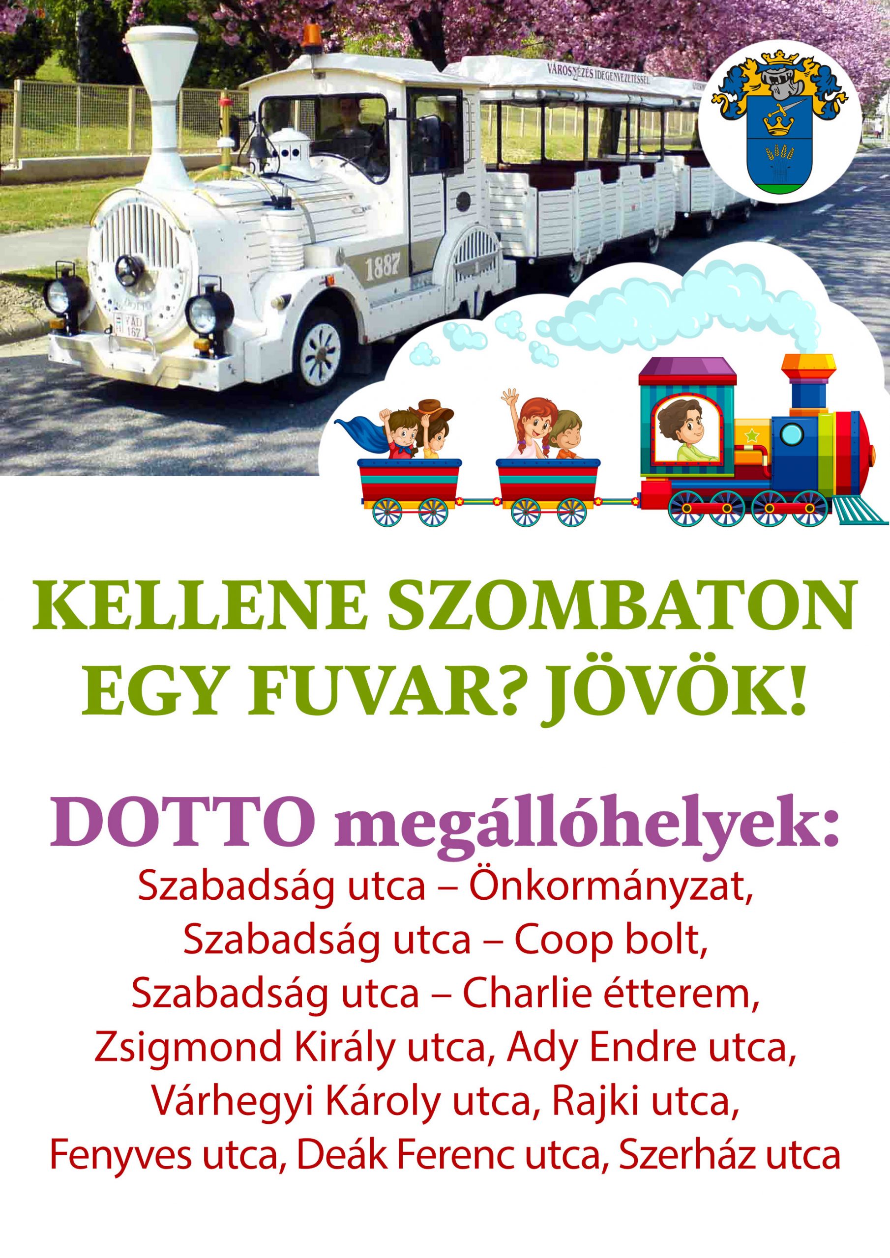 Tavaly nagy sikert aratott, ezért idén megint, szombat délután DOTTO kisvonattal is lehet jönni a rendezvényre! A megállóhelyek táblái kihelyezésre kerültek!