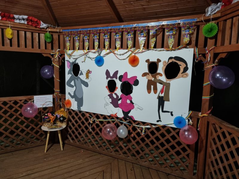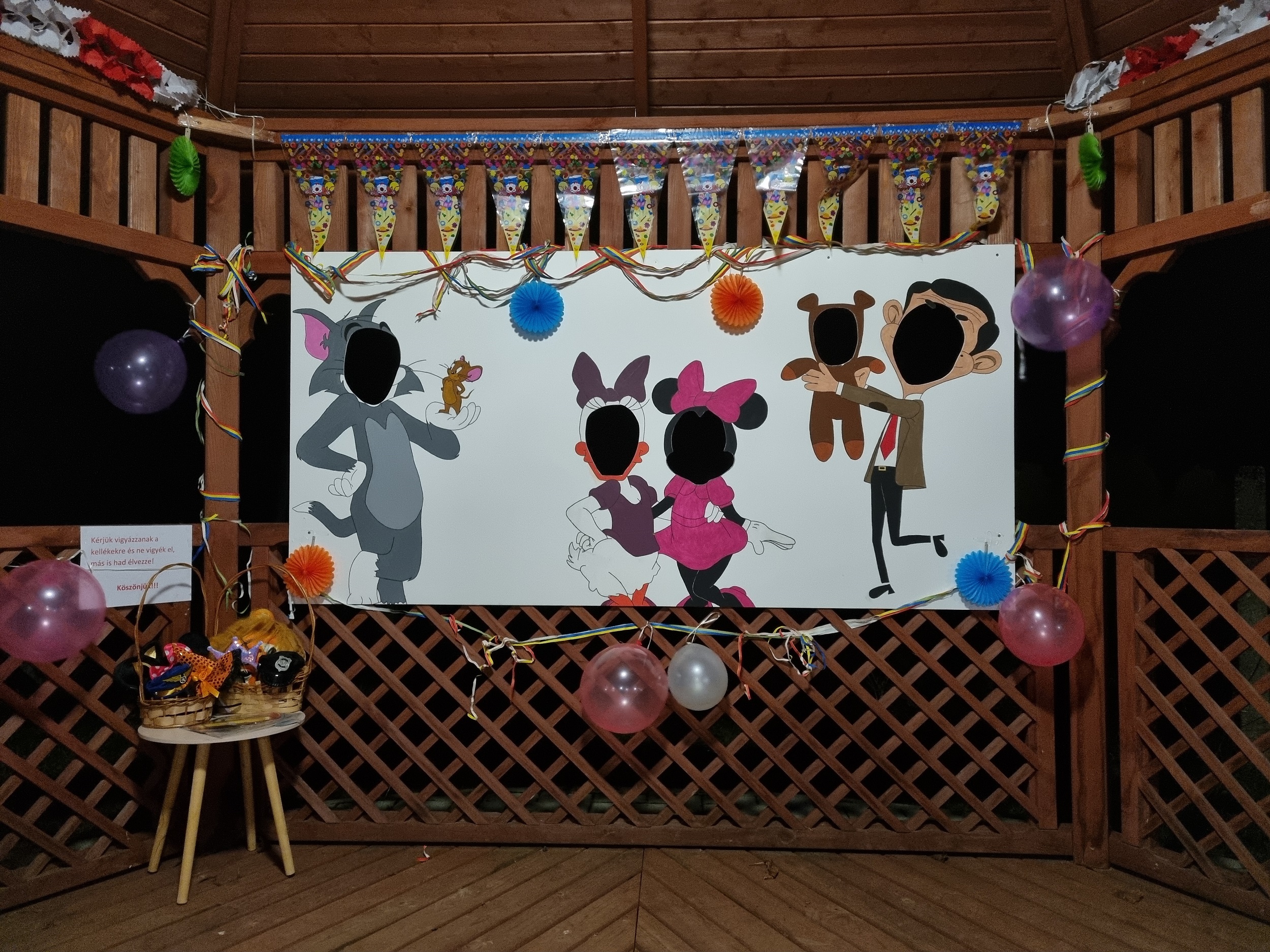 Itt található fotófal, különböző farsangi kellékek és díszítés!