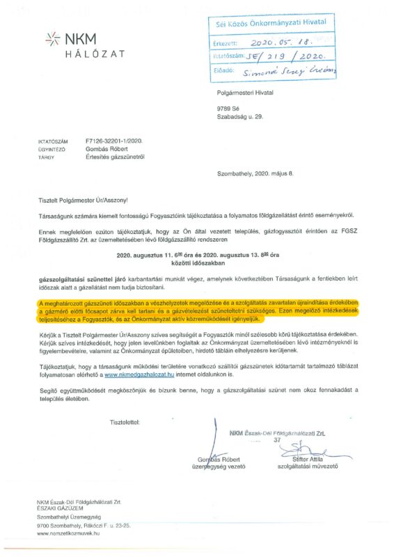 Ebben az időszakban településünkön a GÁZELLÁTÁS SZÜNETEL!!
