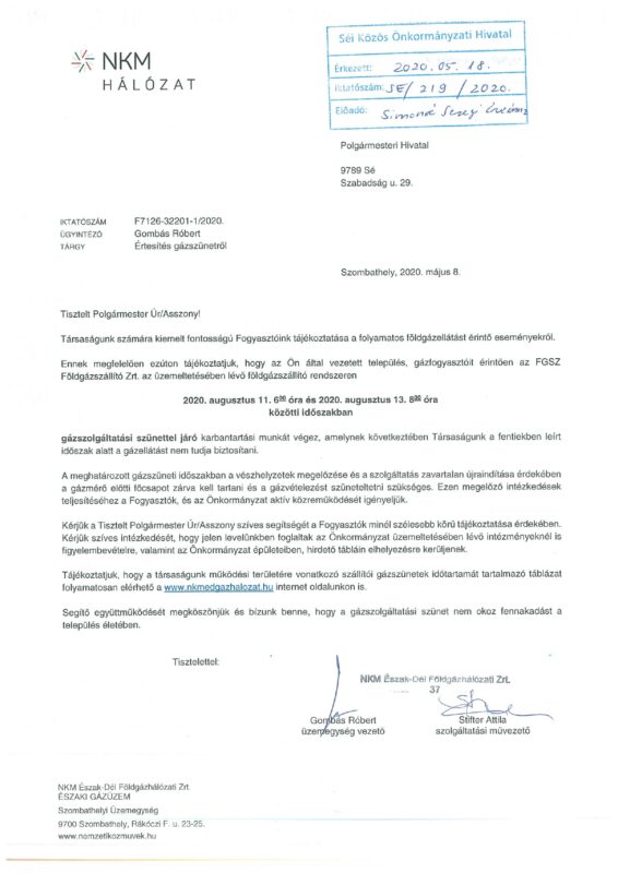 Ebben az időszakban településünkön a GÁZELLÁTÁS SZÜNETEL!!