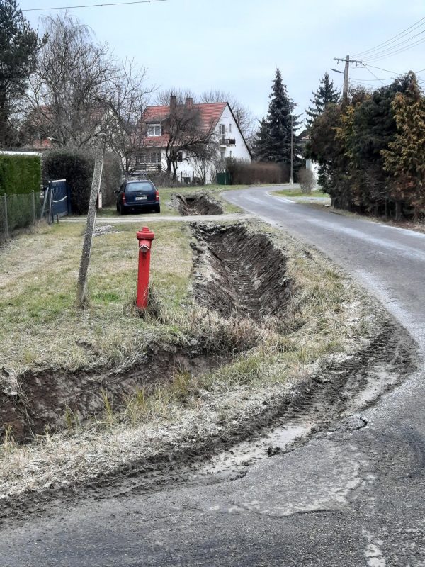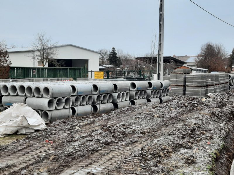 A beruházást végző Geomé Geodéziai és Mélyépítő Kft. mindenki megelégedésére szakszerűen végzi a kiépítést. Sok az eső, nagy a sár! Tapasztalhatjuk, hogy a kivitelezők külön gondot fordítanak arra, hogy a gépeik által az utakra felhordott sarat mindig letakarítsák.