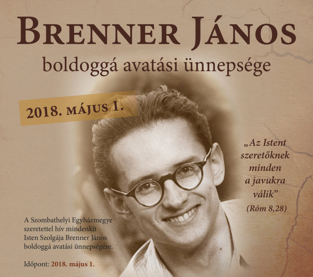 • Május 1-én, kedden lesz Brenner János vértanú boldoggá avatása a szombathelyi emlékműnél, 9 órától már megkezdődik a lelki ráhangolódás, 11-kor kezdődik az ünnepi szentmise, amelyet Ferenc pápa képviseletében Angelo Amato bíboros celebrál, szentbeszédet Erdő Péter bíboros mond. A szentmisét a Duna TV elő egyenes adásban közvetíti 10.45-től a Bonum Tv pedig már 9 órától a lelki ráhangolódást is közvetíti. Délután 2-tól tanúságtételek lesznek, majd a szombathelyi ünnepség 4-kor litániával ér véget az emlékmű dombnál. Este 6-kor kezdődik a keresztút a rábakethelyi templomtól az emlékkápolnáig, majd 7-kor a kápolnánál lesz a befejező szertartás.