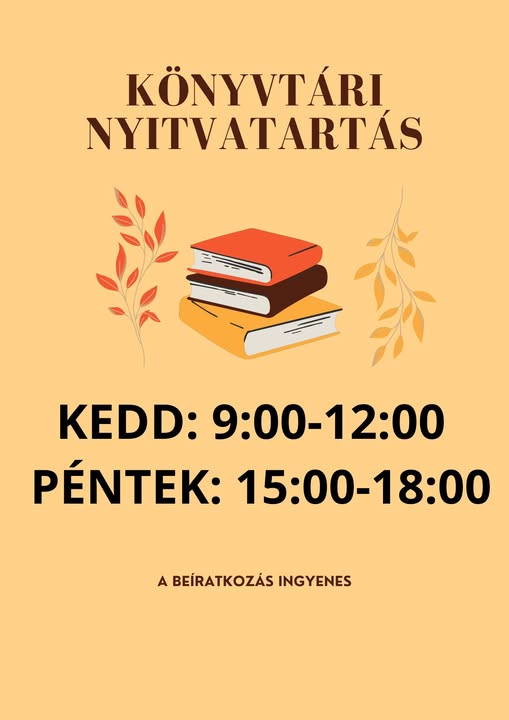 Várjuk Önöket a megújult könyvtárban minden kedden 9:00-12:00 és pénteken 15:00-18:00 óra között!