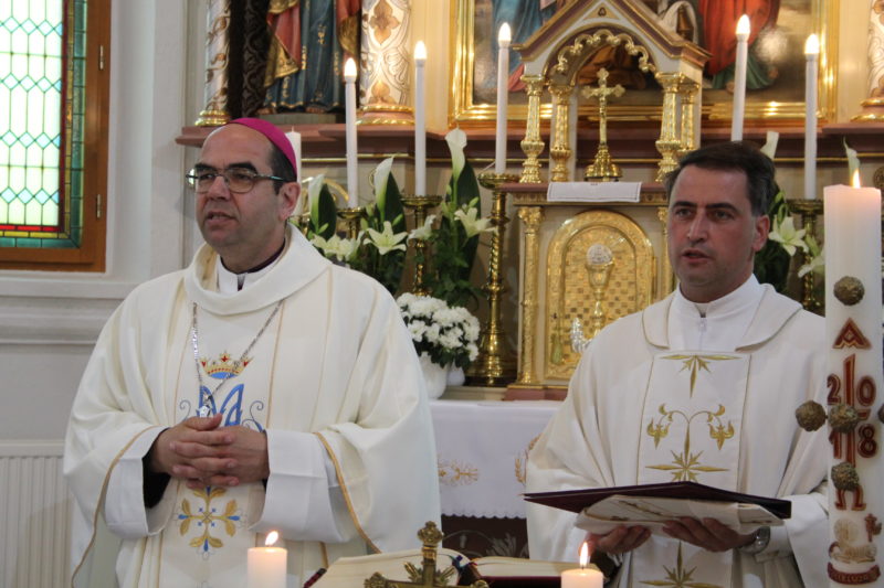 A szentmise elején Dancs Dóra és Henc Zsóka verssel köszöntötték a főpásztort, majd Sörös István polgármester idézte fel a templom építésének körülményeit, az utóbbi évek felújítási munkáinak állomásait. A gitáros szentmise keretében dr. Székely János megáldotta a felújított főoltárt, a szószéket, a Mária-oltárt illetve a 14 stációs keresztutat. Szentbeszédében a főpásztor a templom ezen ékeinek szimbolikájáról beszélt, majd anyák napja révén az édesanyákhoz is szólt. Felidézte Szent Gianna Beretta Molla példáját, akinél, mikor harmadik gyermekét várta, két hónapos várandósan az orvosok rosszindulatú daganatot diagnosztizáltak méhében. Három lehetőség állt előtte: eltávolítják a daganatot a magzattal és a méhhel együtt, amely azt jelentette volna, hogy Giannának nem születhet több gyermeke; vagy meghagyva a későbbi szülés lehetőségét, abortálják a csecsemőt, és kiveszik a tumort; vagy meghagyják a születendő gyermek életét, és csak a daganatot távolítják el. Gianna e harmadik, bár legkockázatosabb lehetőség mellett döntött. A műtét sikerrel járt, de Gianna és a magzat élete továbbra is veszélyben volt. Nagy bizalommal fordult azonban Istenhez, egyetlen vágya az volt, hogy egészséges gyermeknek adhasson életet. Annak ellenére, hogy tudta, a gyermek kihordása nehéz lesz, mégis az élet mellett döntött, könyörögve férjének, védelmezze az életet a lehetséges fájdalmas következmények ellenére is. Pietro később így emlékezett vissza felesége szavaira: „Gianna határozott, de békés hangon beszélt – olyan határozottsággal, amit soha nem fogok elfelejteni.” Ezt mondta: „Ha dönteni kell köztem és a gyermek között, ne hezitálj, válaszd a gyermeket! Mentsd meg őt!” A megyésfőpásztor elmondta: tanúságtétele hősies, igazi himnusz az élet mellett.