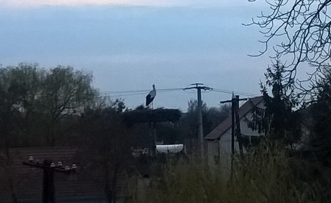 Hosszú utat tettek meg, ma megérkeztek a gólyák falunkba. H. Pezenhófer Brigitta örökítette meg a nevezetes eseményt.