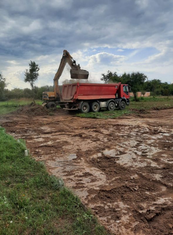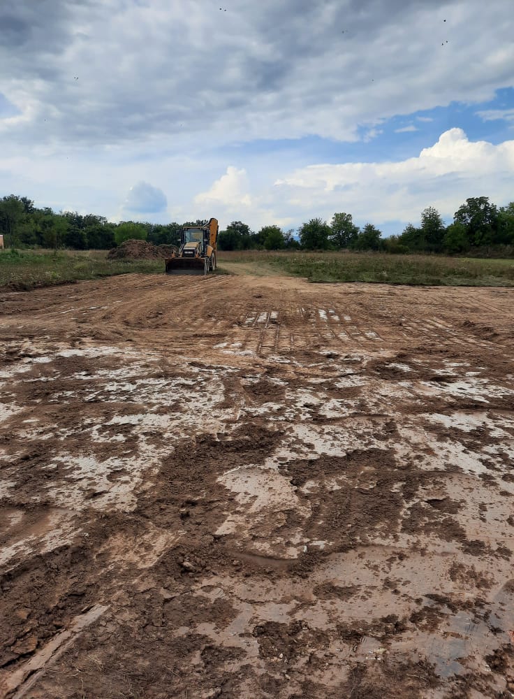 A beruházást végző Inter-Alp Kft. munkagépei ma megjelentek az építési területen. Talajegyengetéssel indultak a munkafolyamatok! Hamarosan az alapozás következik!