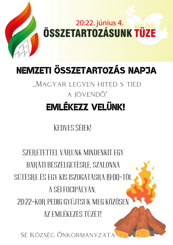 Június 04-én ünnepeljük a Nemzeti Összetartozás Napját. Sében hagyományt szeretnénk teremteni azzal, hogy minden évben megtartjuk az emléknapot.