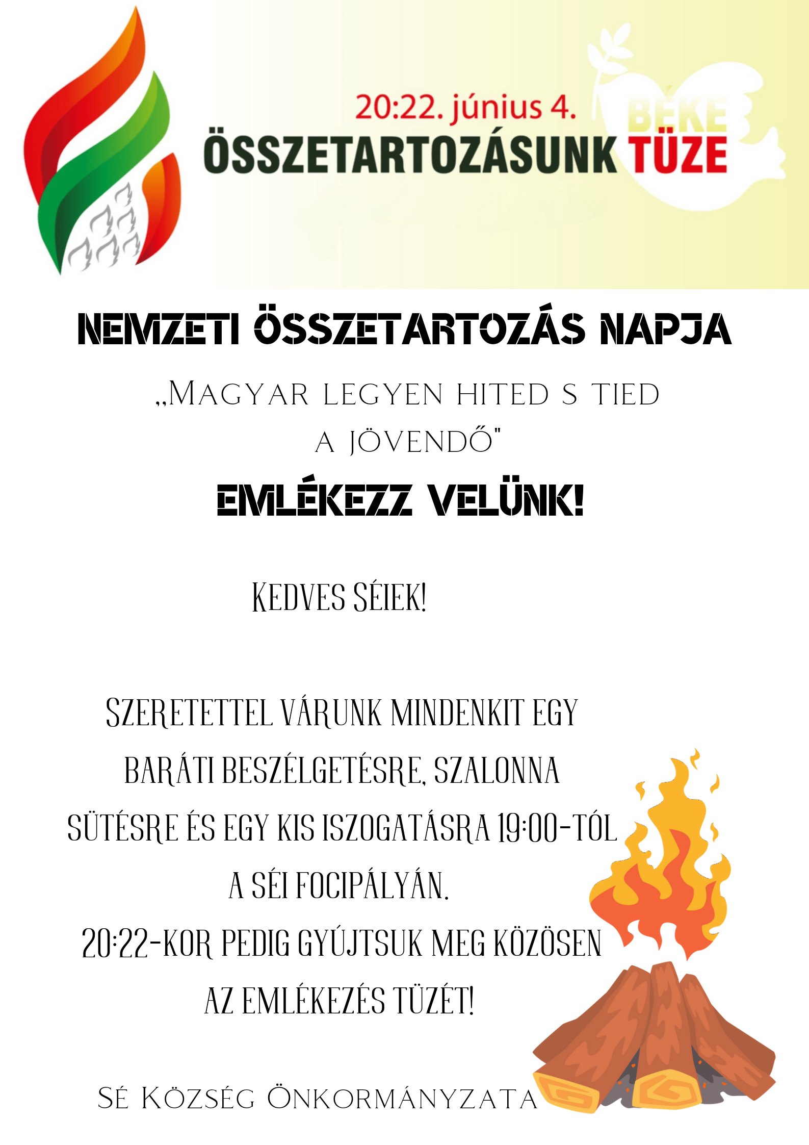 Az emlékek felidézése után közösen gyújtjuk meg az ÖSSZETARTOZÁS TŰZÉT 20:22-kor!