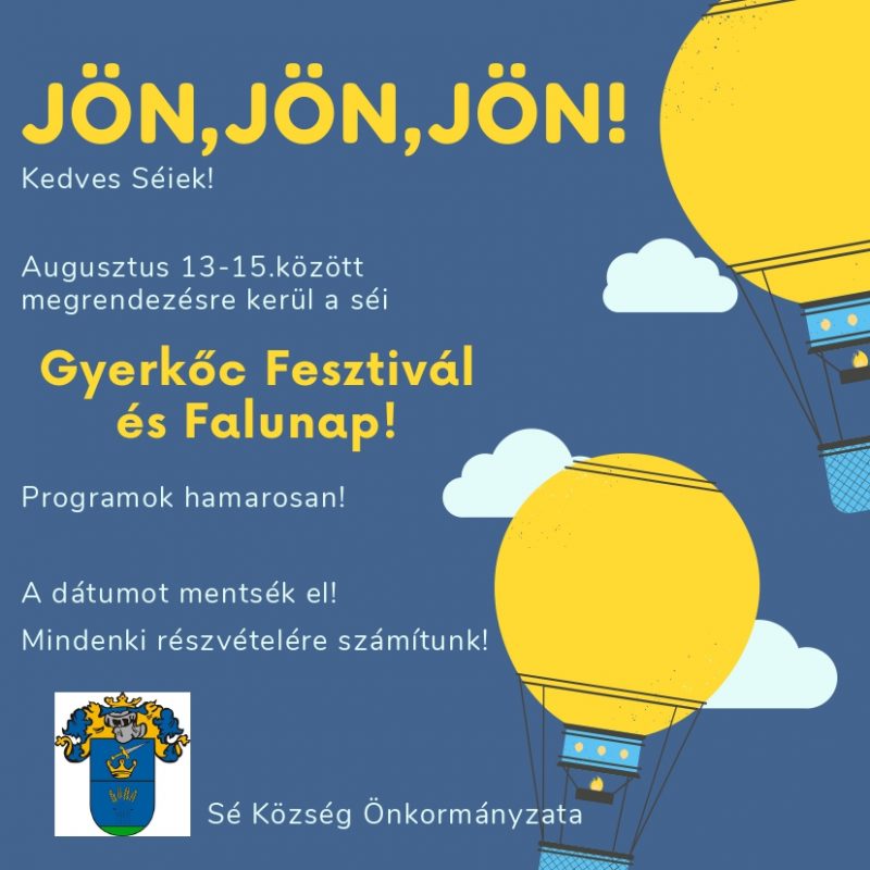 Augusztus 13-15. között megrendezésre kerül a séi Gyerkőc Fesztivál és Falunap!