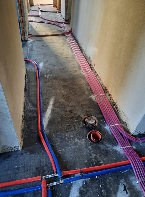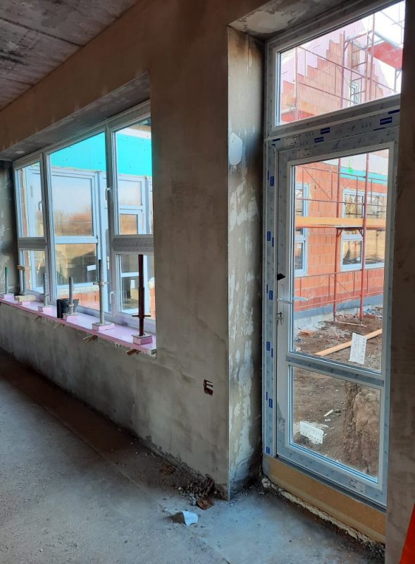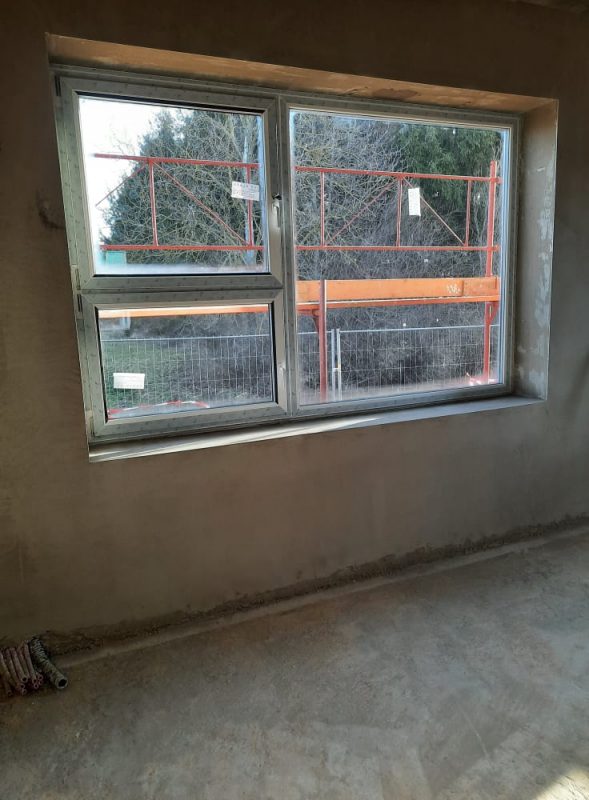 A nyílászárókba már az üvegek is bekerültek! A villanyszerelési munkák folytatódtak. A gépészeti munkák is elkezdődtek! A vakolás megtörtént. A vízzáró szigetelés lehelyezésre került!
