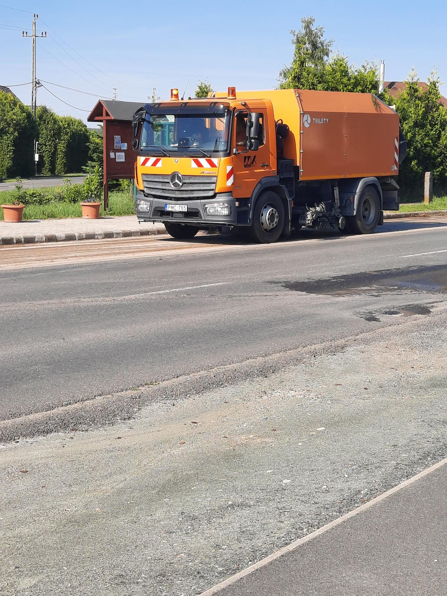 A mai napon a falunkon átmenő kerékpárút vizes seprése történt meg, megspékelve a busz beállók és a közút északi részének tisztításával! Köszönjük a Magyar Közútnak a munkálatokat!