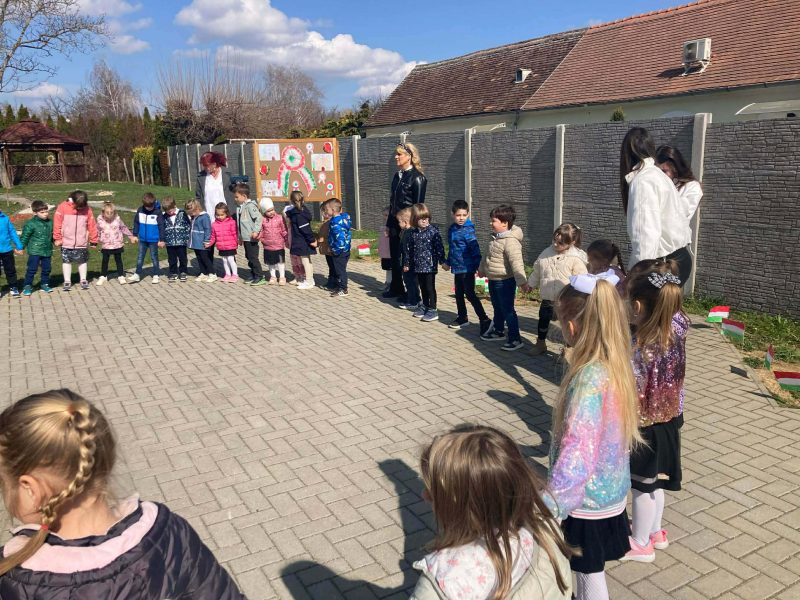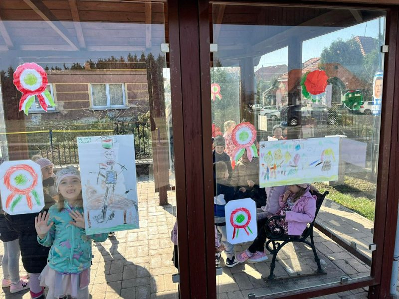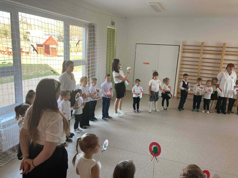 Az óvodában is ünnepeltek. Szorgos kezek készítették a nemzeti színű zászlókat és tulipános táblákat, hogy aztán közös ünnepléssel emlékezzenek meg az 1848-49-es forradalom és szabadságharcról.