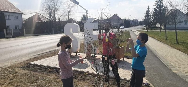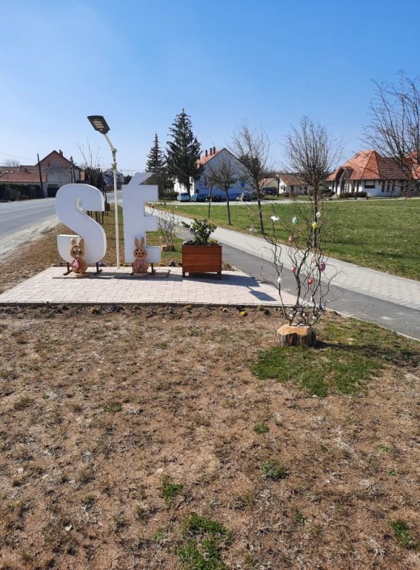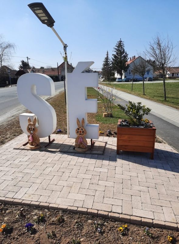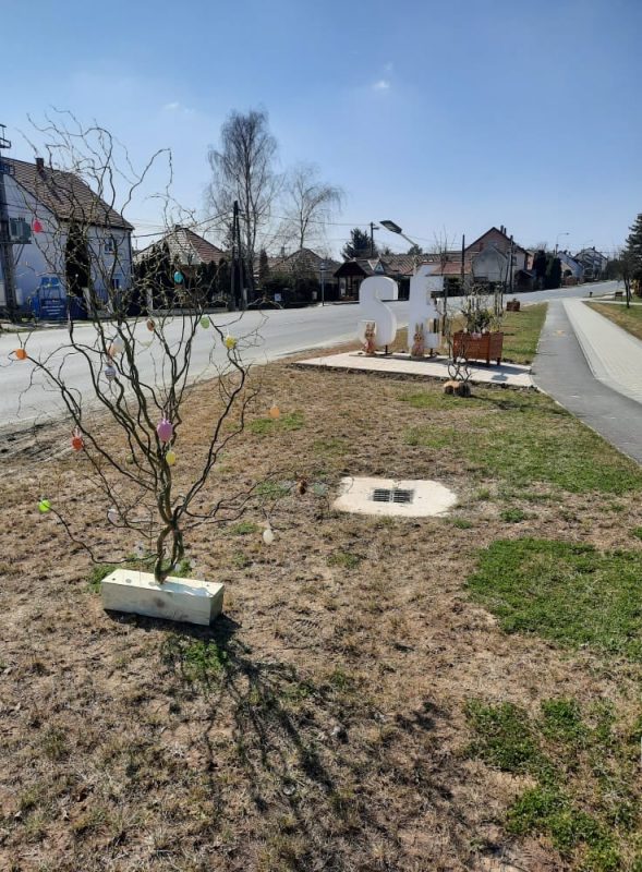 Ehhez kapcsolódóan már most, a Húsvétot megelőző hétvégére próbáltuk a ünnepet falunk központi helyein színesebbé tenni! Ebből kifolyólag a SÉ betűnél, a Faluháznál, az Önkormányzati Hivatalnál és az alsó buszvárónál is díszítések történtek. Többek között fa nyuszik és tojásfák kerültek kihelyezésre!