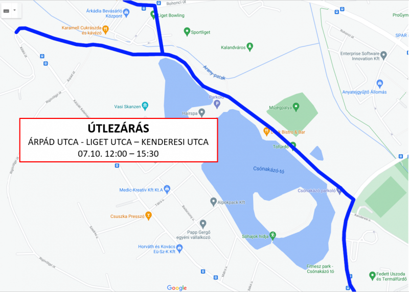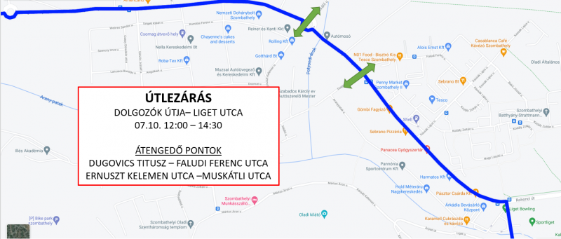 Az érintett útszakaszon Szombathelyen útlezárások is lesznek, amint az a mellékelt térképen látható!